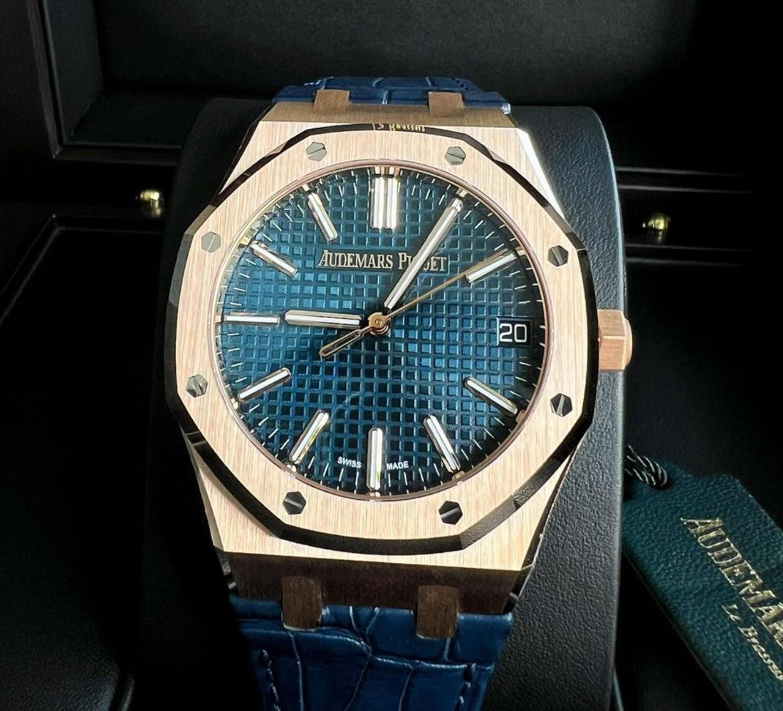 Reference: 15510OR.OO.D315CR.02 Material 18-carat pink gold Water Resistance 50 m Size 41 mm Dial Blue...