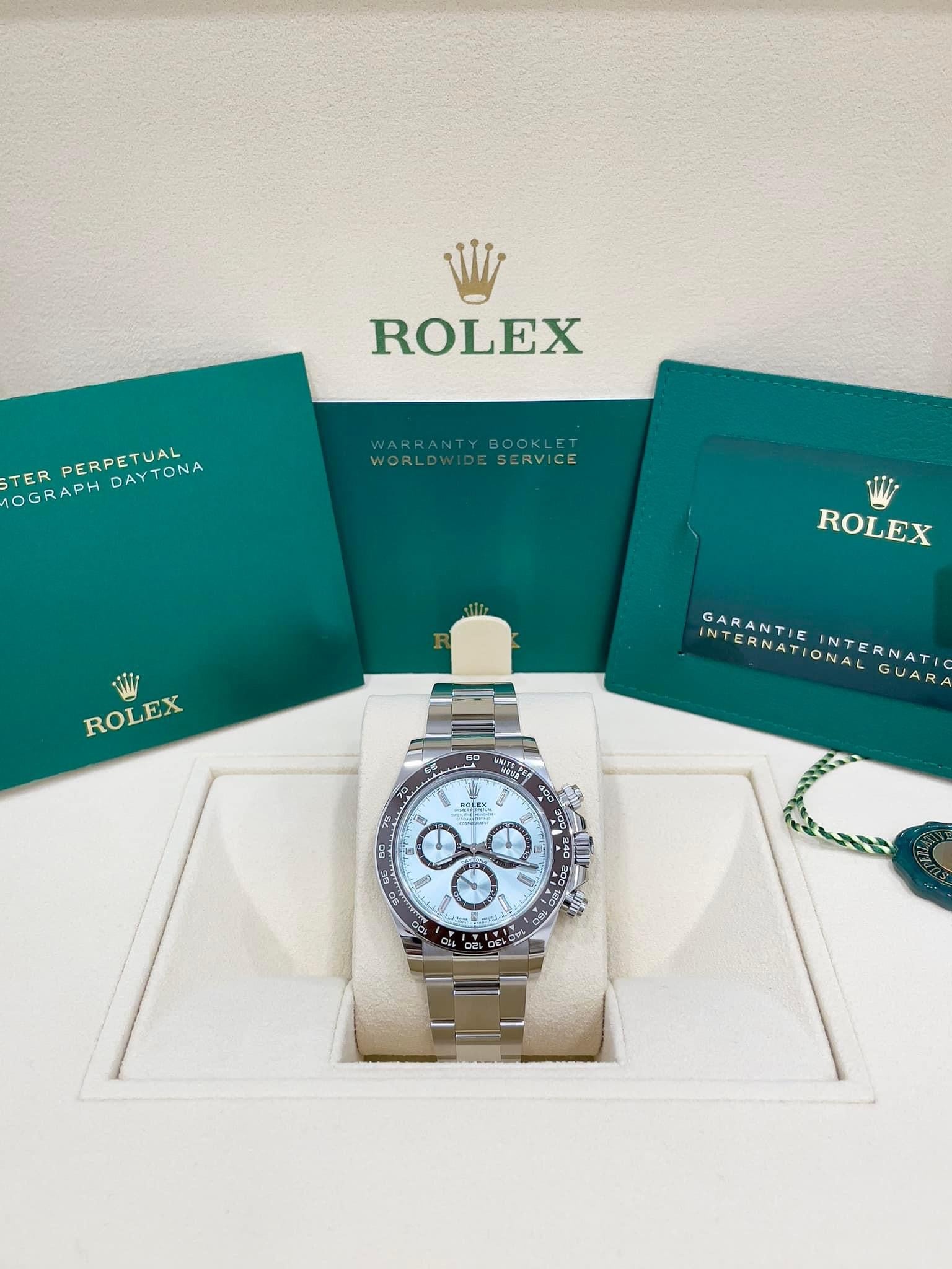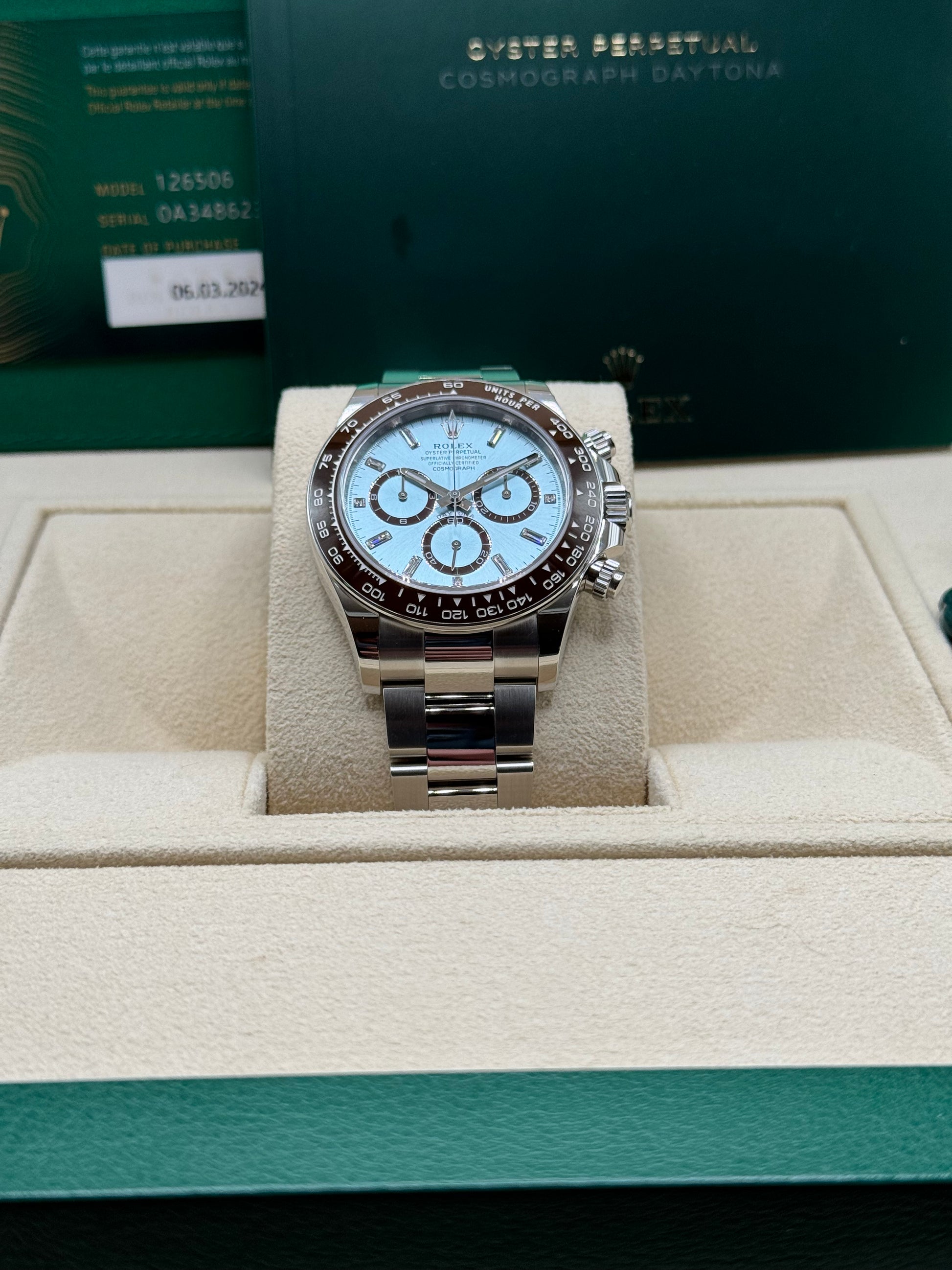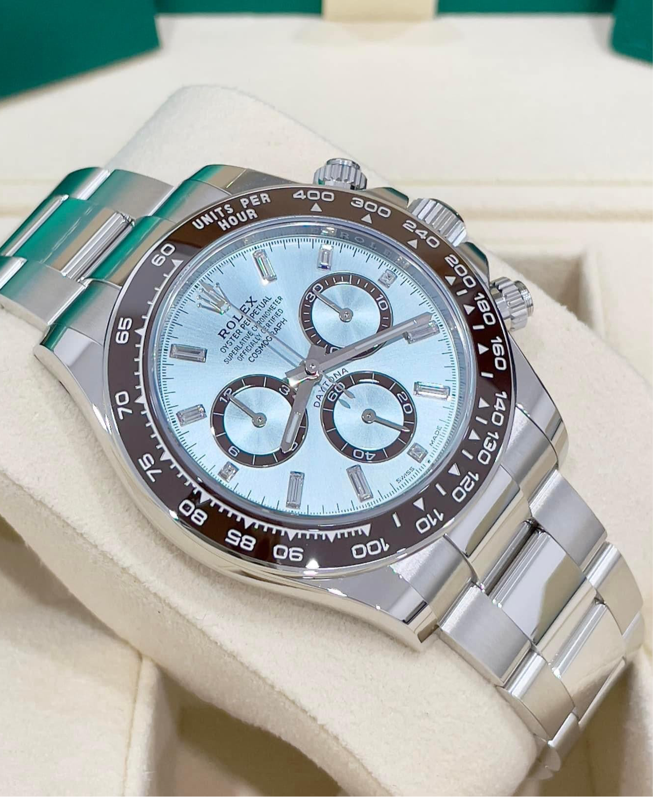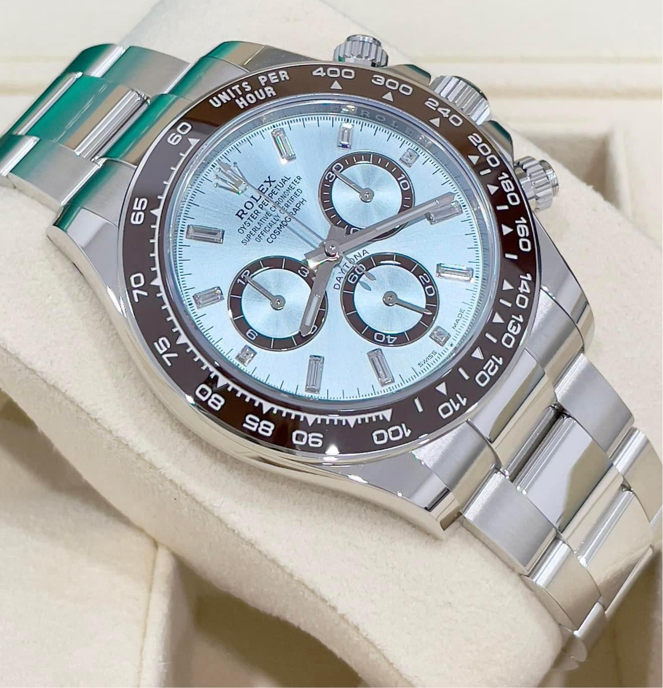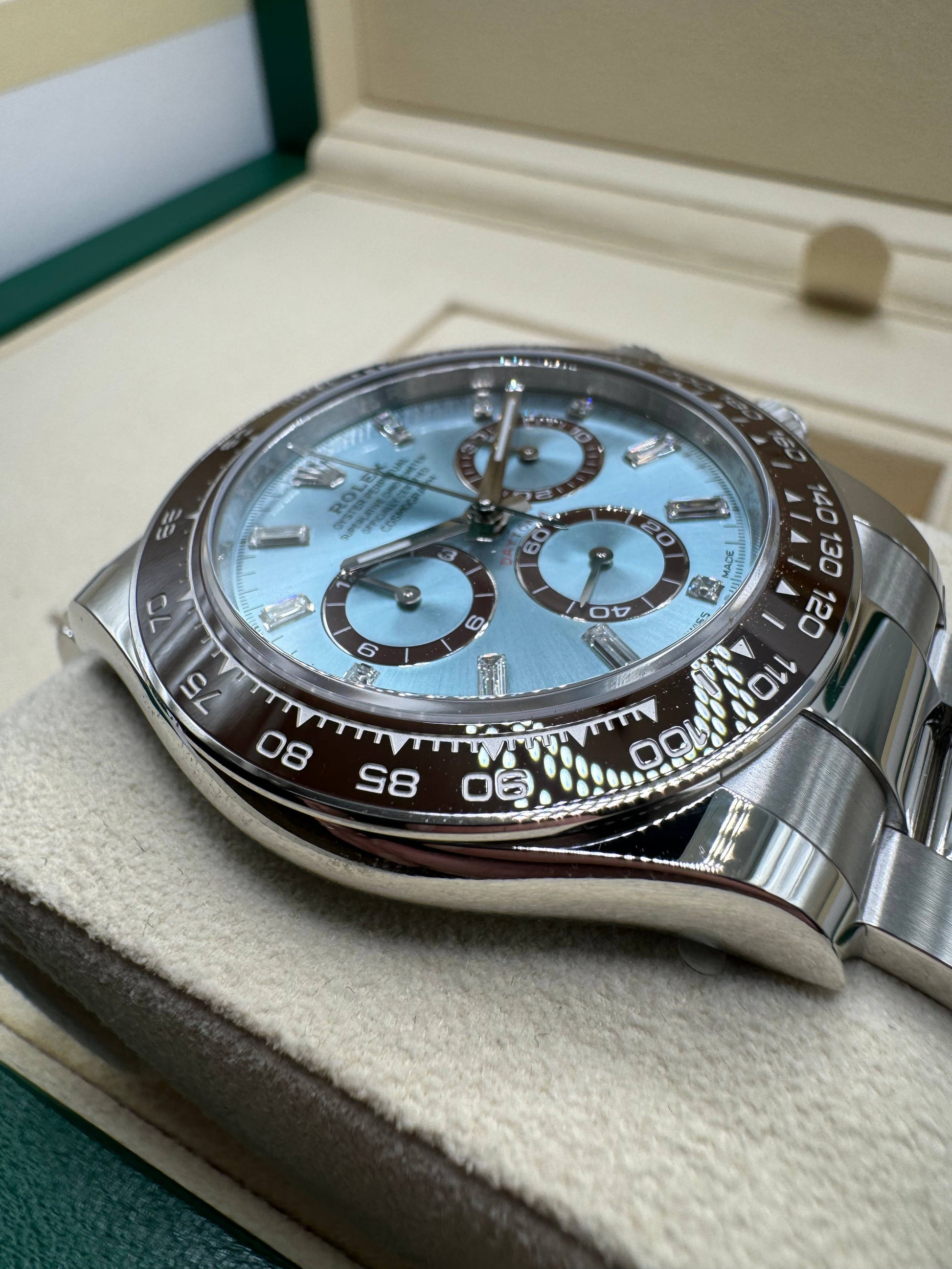 UNWORN 2025 Rolex Platinum Daytona 40mm, Ice Blue Baguette Dial Reference: 126506