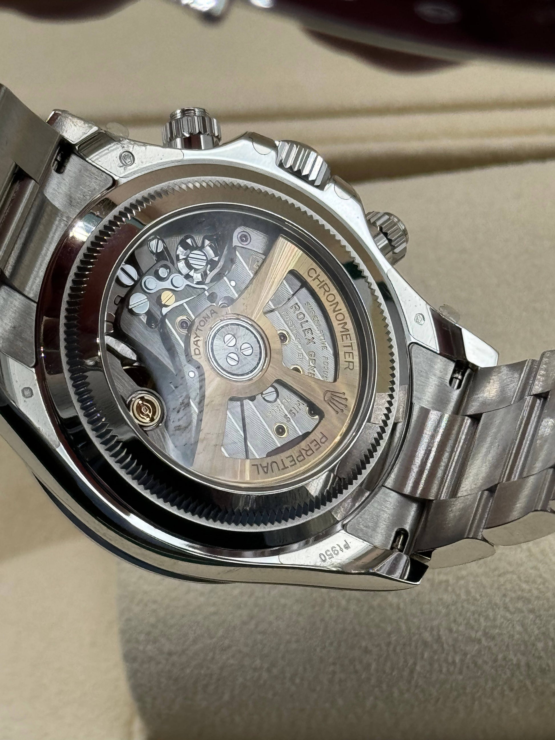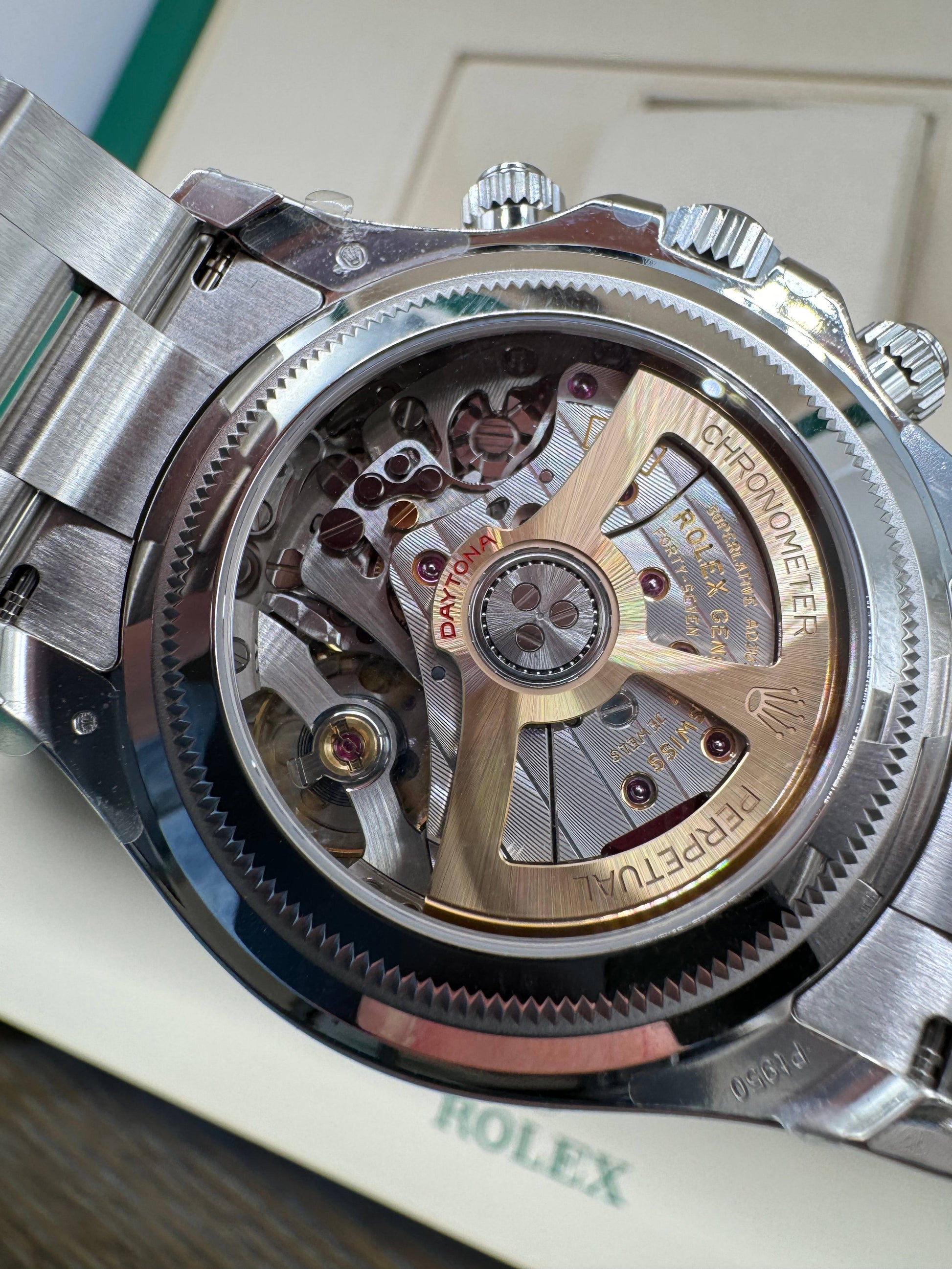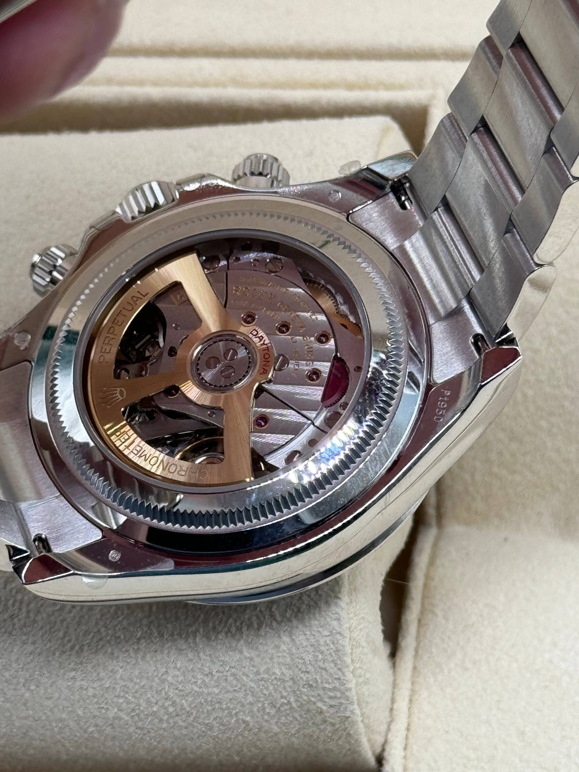 Each watch is meticulously pulled from our showcase, verified against the website listing, and packaged with the corresponding box and papers. It then undergoes a series of tests conducted by our expert watchmaking team, ensuring proper cosmetic condition, timing accuracy, and water resistance (when applicable).