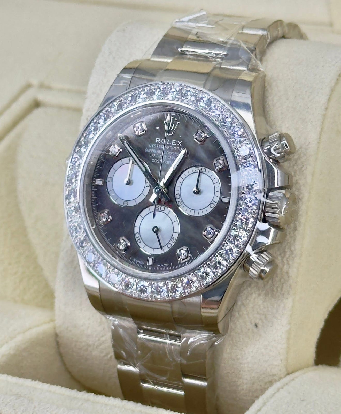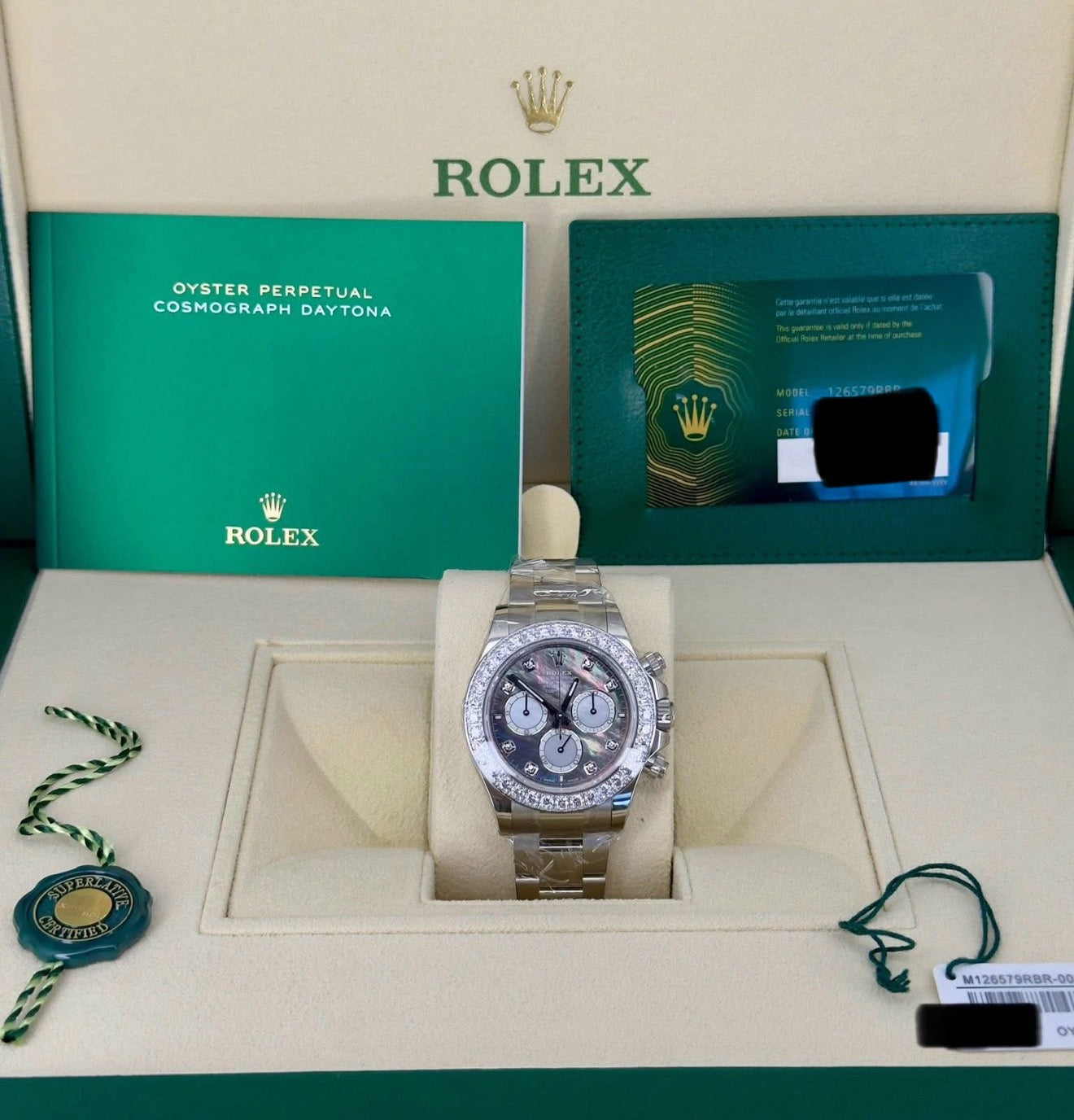 Rolex Cosmograph Daytona 40mm Black & White MOP Diamond-Set Dial Oyster Bracelet Diamond-Set Bezel - 126579RBR | 2025 Model