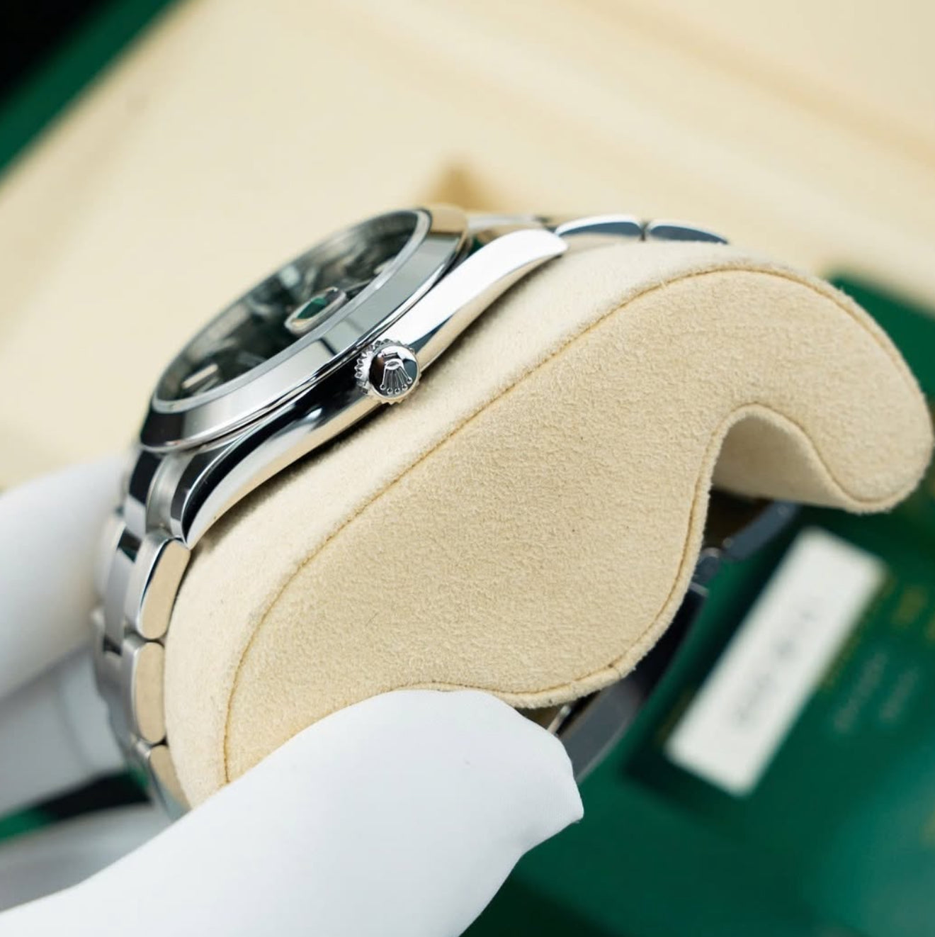 Each watch is meticulously pulled from our showcase, verified against the website listing, and packaged with the corresponding box and papers. It then undergoes a series of tests conducted by our expert watchmaking team, ensuring proper cosmetic condition, timing accuracy, and water resistance (when applicable).