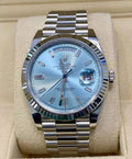 Rolex Day-Date 40 UNWORN 2025 Day-Date 40 Platinum ICE BLUE FACTORY BAGUETTE DIAL Fluted Bezel