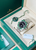 Each watch is meticulously pulled from our showcase, verified against the website listing, and packaged with the corresponding box and papers. It then undergoes a series of tests conducted by our expert watchmaking team, ensuring proper cosmetic condition, timing accuracy, and water resistance (when applicable).