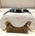 Each watch is meticulously pulled from our showcase, verified against the website listing, and packaged with the corresponding box and papers. It then undergoes a series of tests conducted by our expert watchmaking team, ensuring proper cosmetic condition, timing accuracy, and water resistance (when applicable).